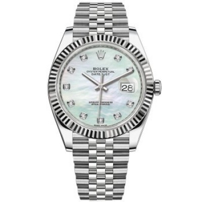 Швейцарские часы Rolex ROLEX журнальный тип 41 серии автоматические механические мужские часы M126334-0020 белый жемчуг с бриллиантовой цепочкой с пятью сетками