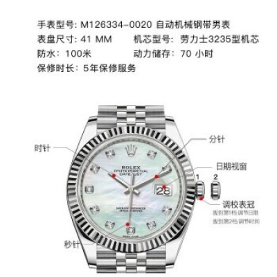 глава > смотреть > Ролекс > Швейцарские часы Rolex ROLEX журнальный тип 41 серии автоматические механические мужские часы M126334-0020 белый жемчуг с бриллиантовой цепочкой с пятью сетками