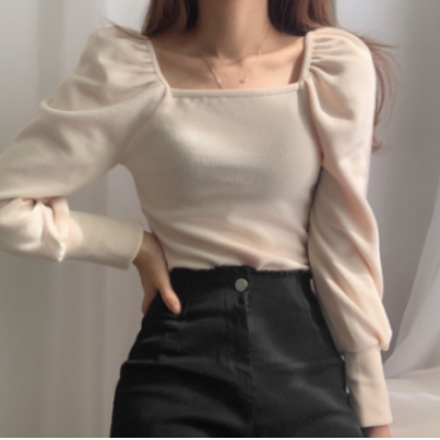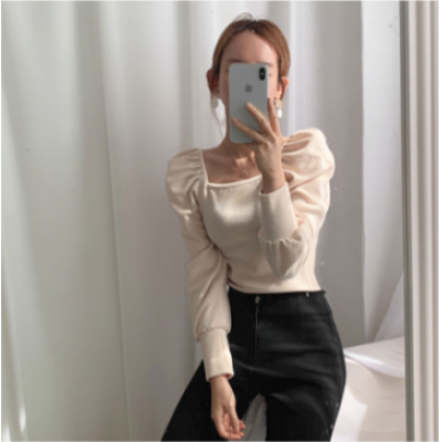 глава > одежда > Скучать > корейский стиль женская женская мода тонкая рубашка с пышными рукавами блузка baju wanita lengan panjang(2 шт.)
