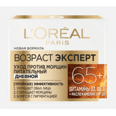 глава > Дневной крем для лица Возраст Эксперт 65+, против морщин, питательный, SPF 20