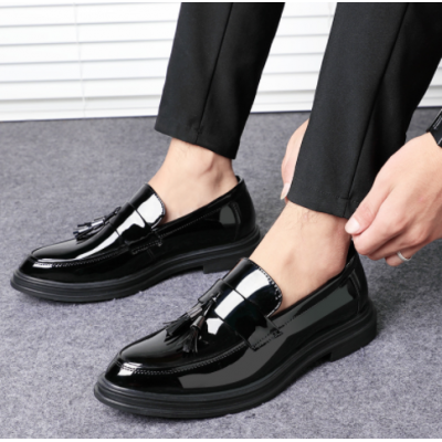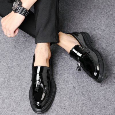 2022 глянцевая деловая мужская обувь формальная повседневная британская трендовая обувь лакированная кожа увеличенная корейская кожаная обувь мужчины 7801 (2 шт)